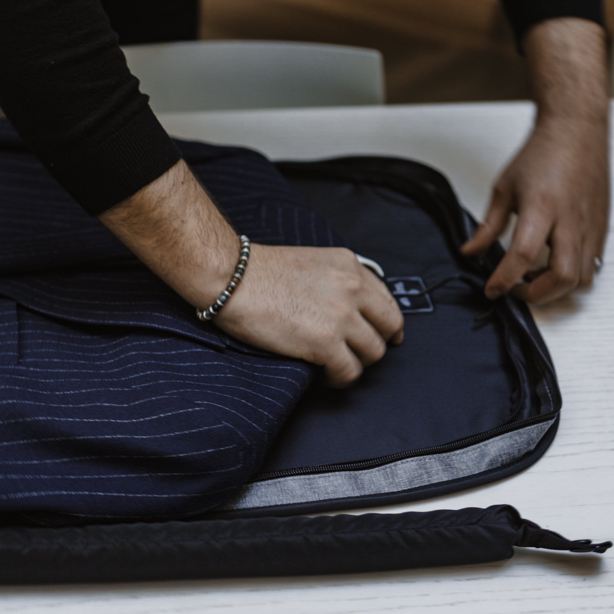 The suit bag works perfectly for commuting. Both on the run and bike ride, or on the train and in the car. With a modern design that always protects the suit.